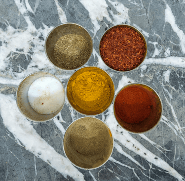 ਹਲਦੀ, ਮਿਰਚ, ਗਰਮ ਮਸਾਲਾ ਅਤੇ ਧਨੀਆ ਪਾਉਡਰ ਨੂੰ ਇੱਕ ਕਟੋਰੇ ਵਿੱਚ ਥੋੜ੍ਹਾ ਪਾਣੀ ਪਾ ਕੇ ਪੇਸਟ ਬਣਾ ਲਵੋ।/ . In a bowl, add turmeric, red chili powder, garam masala, and coriander powder. Add a little water and make a paste.