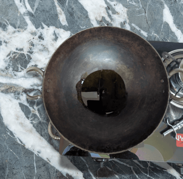 ਗੈਸ ’ਤੇ ਲੋਹੇ ਦੀ ਕੜਾਹੀ ਰੱਖੋ। ਤੁਸੀਂ ਕੋਈ ਵੀ ਪੈਨ ਵਰਤ ਸਕਦੇ ਹੋ।/ Place an iron kadai on the stove. You can use any pan you prefer.