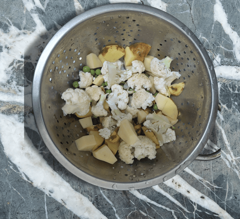 Make this easy Aloo Gobhi Matar recipe with potatoes, cauliflower, and green peas. A simple, tasty, homemade Punjabi-style sabzi explained in Punjabi and English with step-by-step instructions, tips, and serving suggestions.