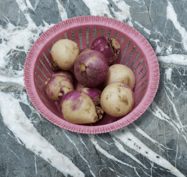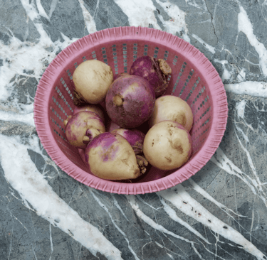 ਸ਼ਲਗਮ ਹਮੇਸ਼ਾ ਤਾਜ਼ਾ ਅਤੇ ਨਰਮ ਲਵੋ, ਇਸ ਨਾਲ ਸਬਜ਼ੀ ਮਿੱਠੀ ਬਣਦੀ ਹੈ।/ Always use fresh and tender turnips, they give a naturally sweet taste.