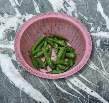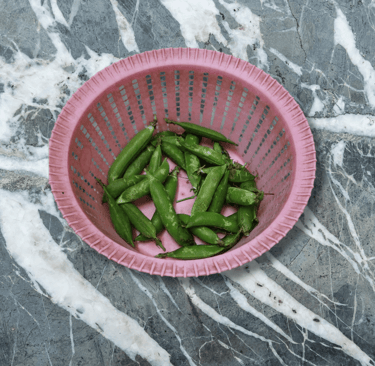 ਮਟਰ ਤਾਜ਼ੇ ਹੋਣ ਤਾਂ ਸਵਾਦ ਹੋਰ ਵੀ ਵਧੀਆ ਆਉਂਦਾ ਹੈ, ਨਹੀਂ ਤਾਂ ਜੰਮੇ ਹੋਏ ਮਟਰ ਵੀ ਵਰਤੇ ਜਾ ਸਕਦੇ ਹਨ।/ Fresh peas give the best flavour, but frozen peas also work well.